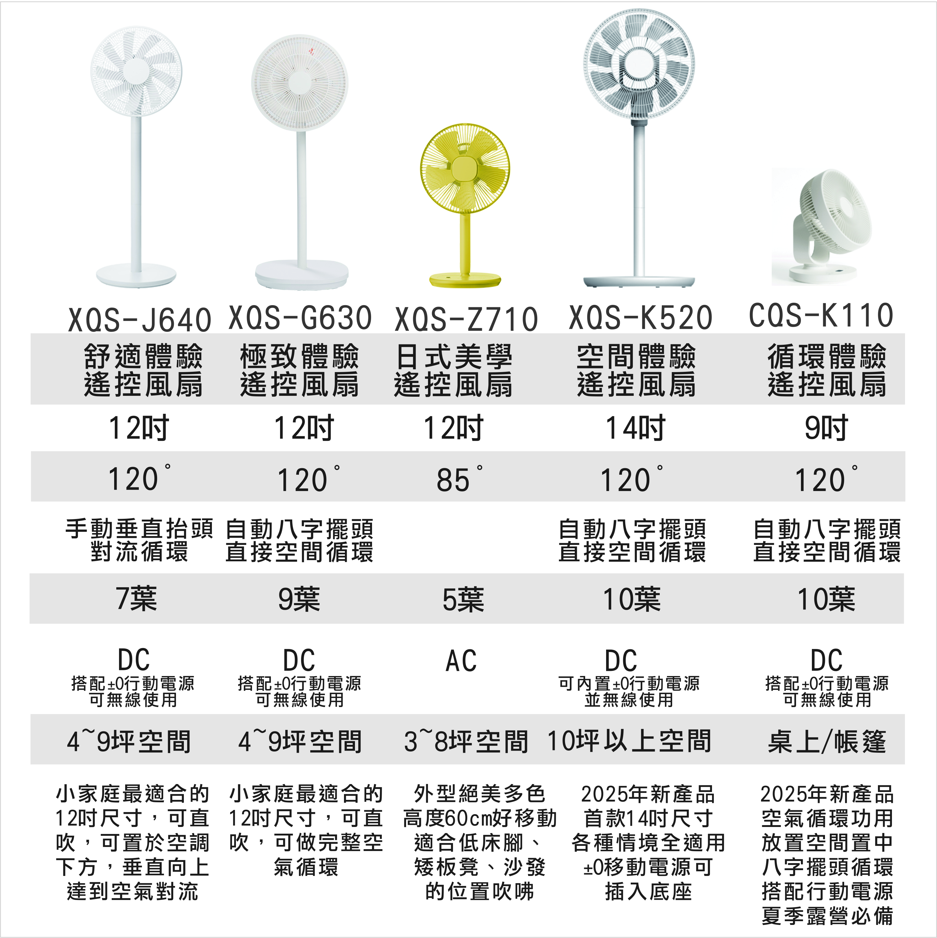 正負零XQS-G630舒適體驗型遙控電風扇,12吋DC省電馬達,120°全方位送風,90°上吹循環。