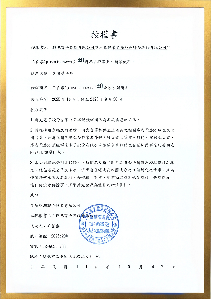 產品皆由群光電子與正負零原廠正式進口,並享有原廠品質保固與維修服務